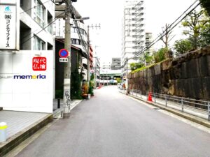 まっすぐ進むと、フェラーリの販売店があり、難波神社が見えてきます。