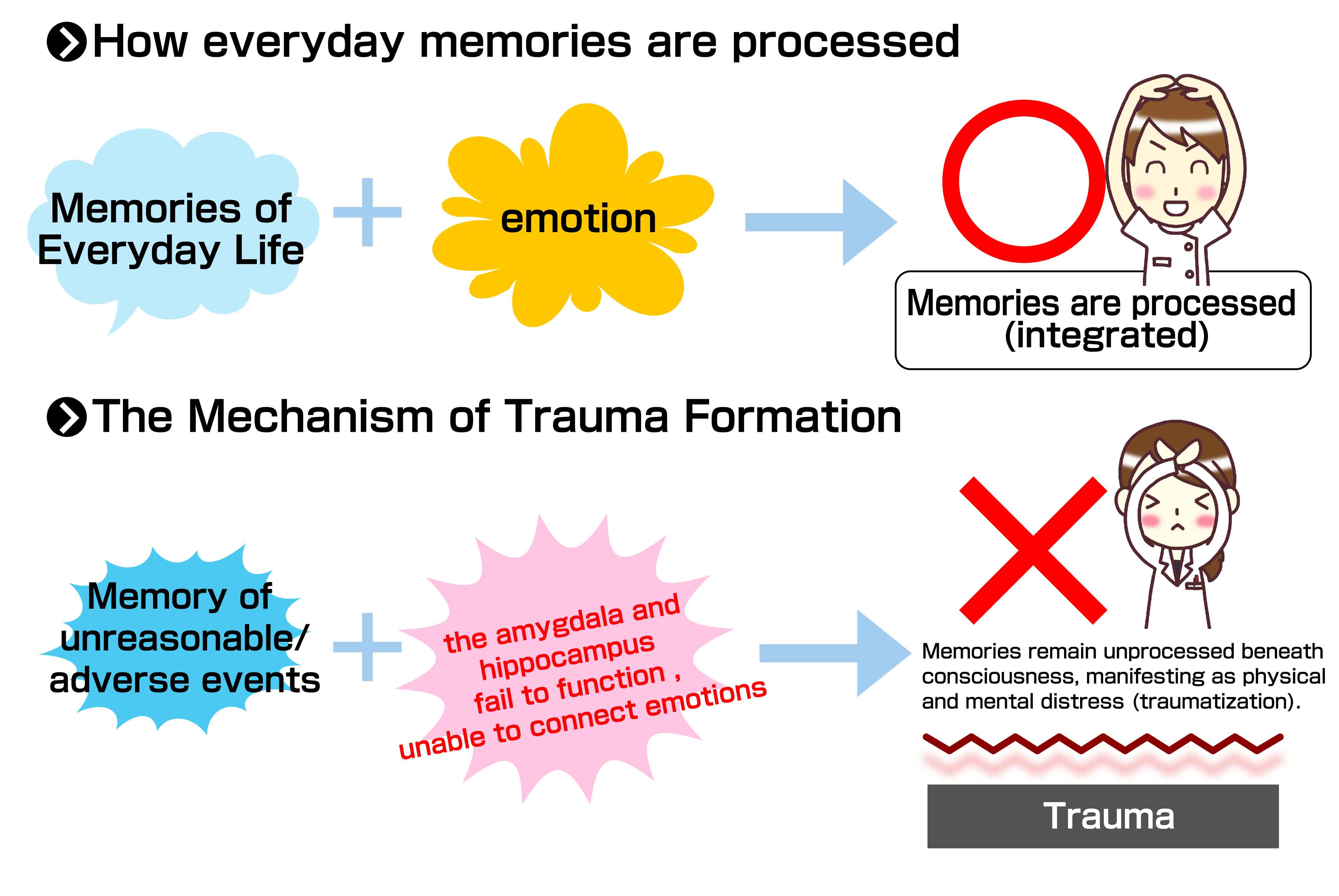 These “unprocessed memories” are thought to drive the phenomenon we call “trauma.” Like a time machine, physical time moves forward, yet the traumatic memory remains fresh; the person lives as if still in the past.