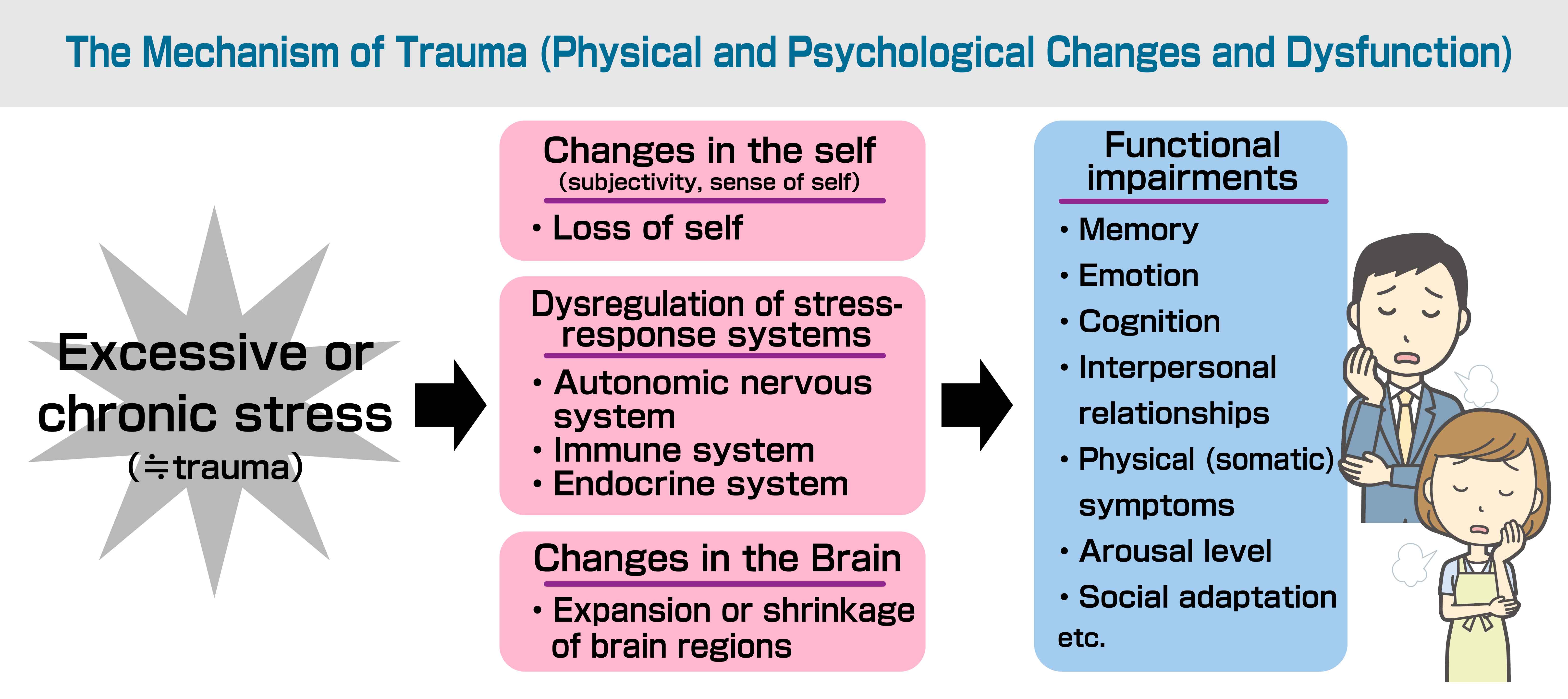 When an animal—including humans—encounters stress that exceeds the threshold of the stress-response system (meeting certain vulnerability conditions), dysregulation arises in the autonomic nervous system, immune system, and endocrine system. This affects domains such as emotion, arousal, cognition, body, and memory, resulting in diverse symptoms and a sense of “ikizurasa.”